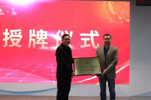 恒領科技董事長黃迎勝為5G創新谷科協授牌。
